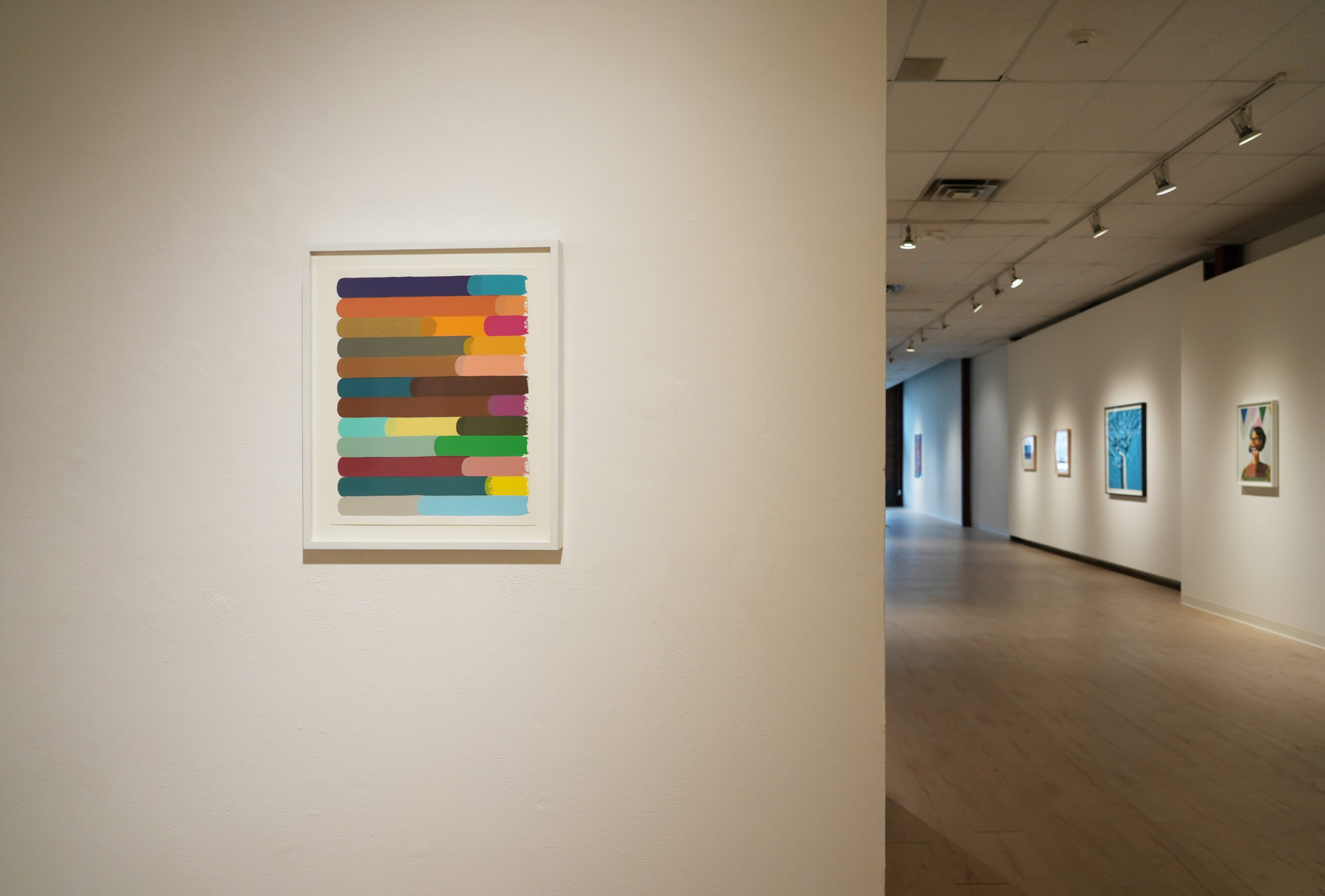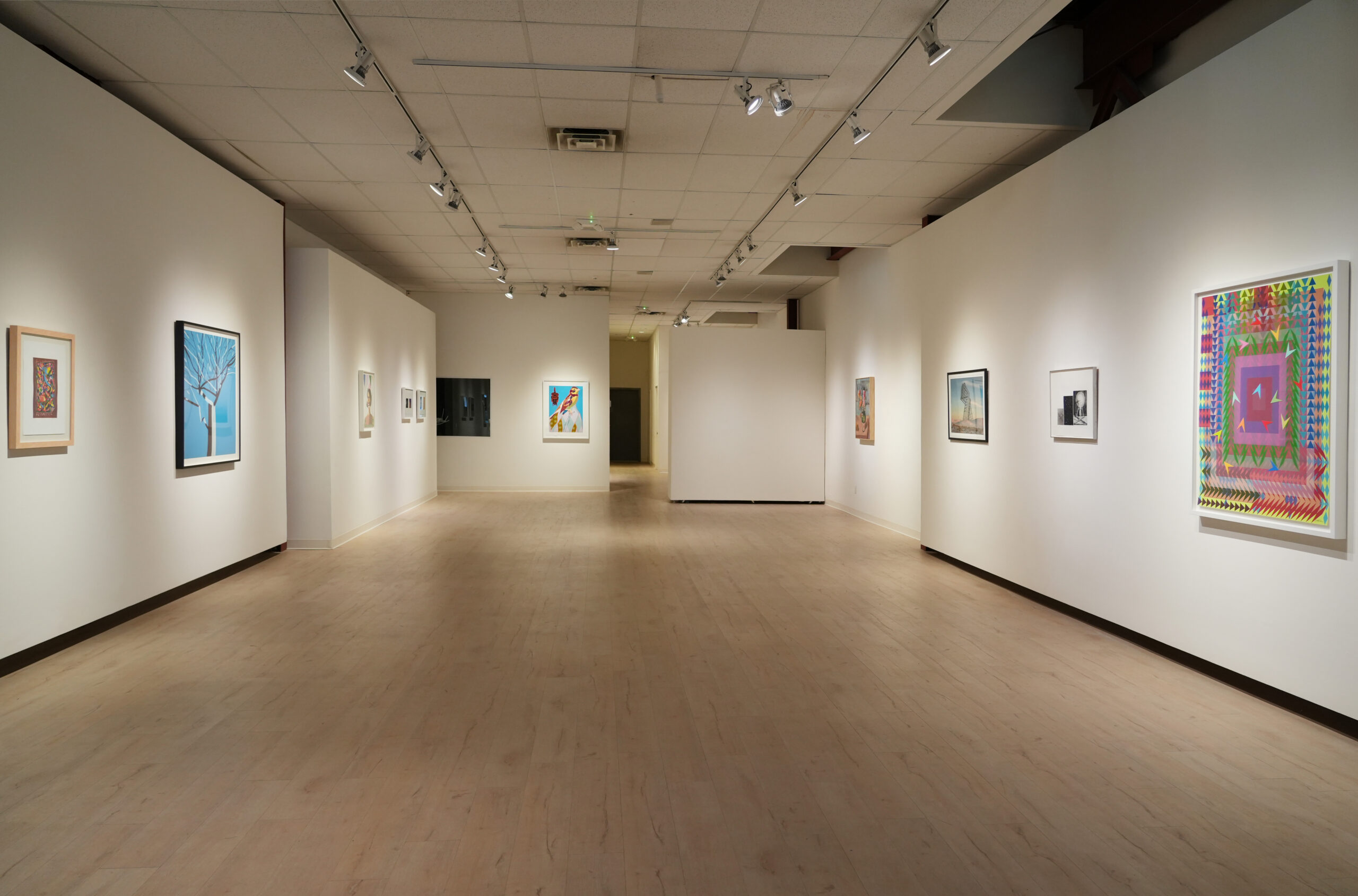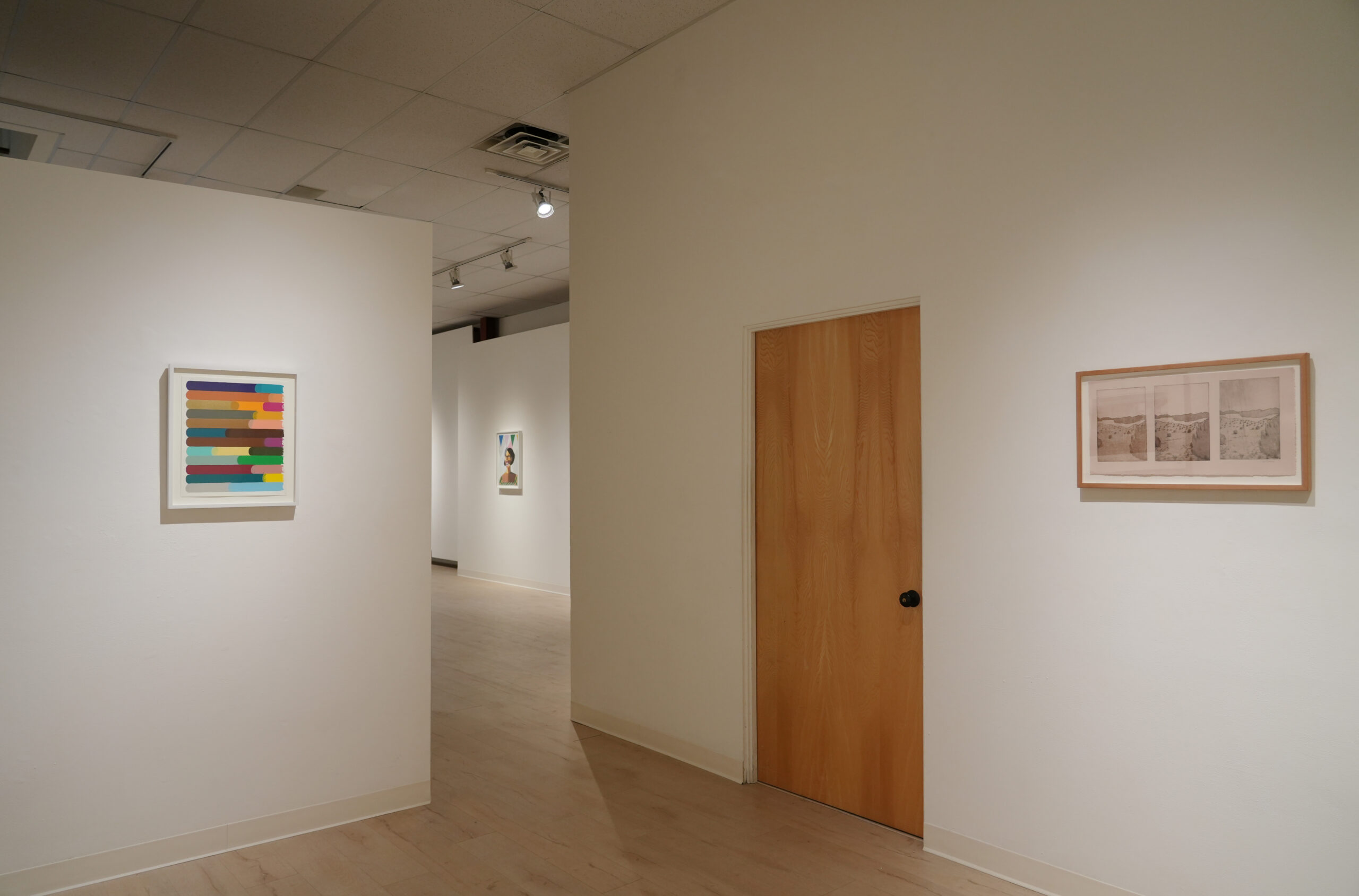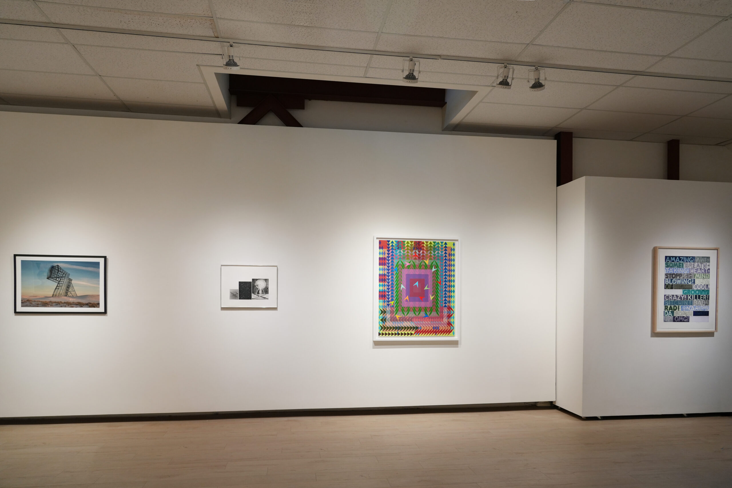The exhibition features prolific contemporary artists, including three distinguished New Mexico-based printmakers. Works by Karsten Creightney (Albuquerque), Nicola López (Santa Fe), and Paula Wilson (Carrizozo) demonstrate the groundbreaking ways regional artists are pushing the boundaries of the medium. Additional works include screenprints by Richard Estes, Martin Creed, Jonas Wood, Derrick Adams, Alex Katz, Jeffrey Gibson, and Yinka Shonibare; a woodblock by Polly Apfelbaum; giclées by Damien Hirst; linocuts and photogravures by Sol LeWitt and Sachiko Cho; etchings by Mel Bochner, Vija Celmins, and Rose B. Simpson; and lithographs by Ed Ruscha.